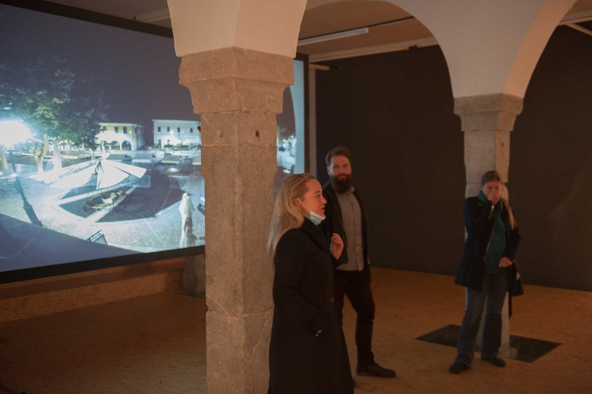 V Novem mestu se je avtorica odločila za nov pristop pri vključevanju mesta samega v razstavo. Da bi ob oblikovanju razstave reflektirala tudi svojo pozicijo umetnice in se skušala v proces razmisleka vključiti tudi osebno, je septembra 2021 v sodelovanju z Andrejo Kopač v prostoru V Glavnem, organizirala odprti atelje, ki ga je naslovila Mesto zgodb. Pri slednjem je k pogovoru o mestu in skupnosti povabila več Novomeščank_anov. Odzvale_i so se strokovnjaki_nje, umetnice_ki, mlajša in starejša generacija. Šestnajst sogovornikov_ic je sodelovalo pri razmisleku o tem kakšna so bila včasih mesta druženja, kakšno je mesto danes in česa si prebivalke_ci želijo za prihodnost. Ker avtorico v zvezi z mestom zanimajo tudi družbeni, politični kontekst in skupnost je skozi pogovore o mestu, stavbah in naravi s sogovorniki_cami razmišljala tudi o tem. Na razstavi si bodo obiskovalci_ke lahko med drugim ogledale_i tudi sklope več krajših videov, ki so nastali iz pogovorov z Novomeščani_kami, vabljeni pa so tudi k sodelovanju pri razmisleku o tem, kakšno mesto si želijo v prihodnosti.O zatvoritvenem dogodku: